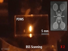 与传统的PDMS激光刻蚀成型技术相比较,该FSS SLP成型技术的加工质量显著提升,具有较高的图案分辨率。此外,研究团队进一步开发出背面扫描SLP(BSS SLP)技术实现了PDMS基体内部(纵深方向)的热解成型加工;基于逐层SiC的形成,该技术成功实现几毫米纵向深度PDMS基材的热解成型加工。整体上较为简单的激光热解成型机理,使得该技术(通过辐照激光强度等工艺参数调控)具有高度可控性,可简便实现PDMS高质量的2D、3D数字图案化。