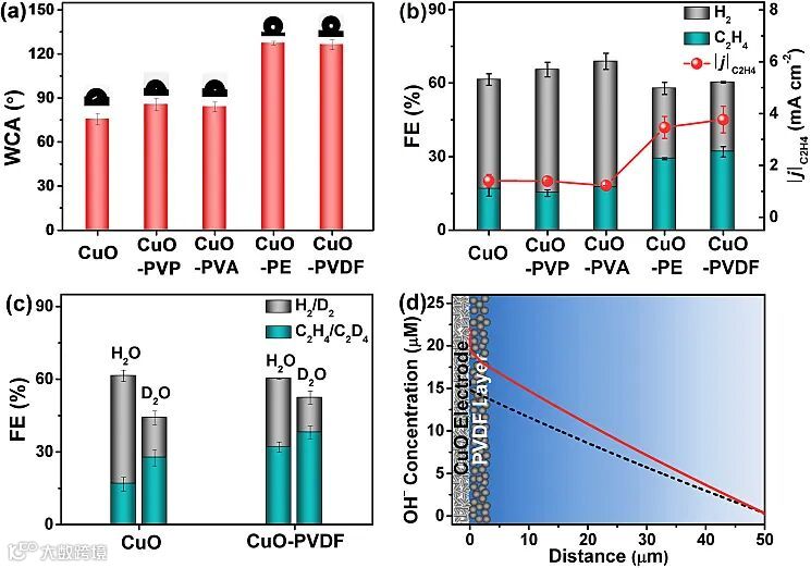 图 1. 疏水界面促进纳米铜电催化二氧化碳还原为乙烯