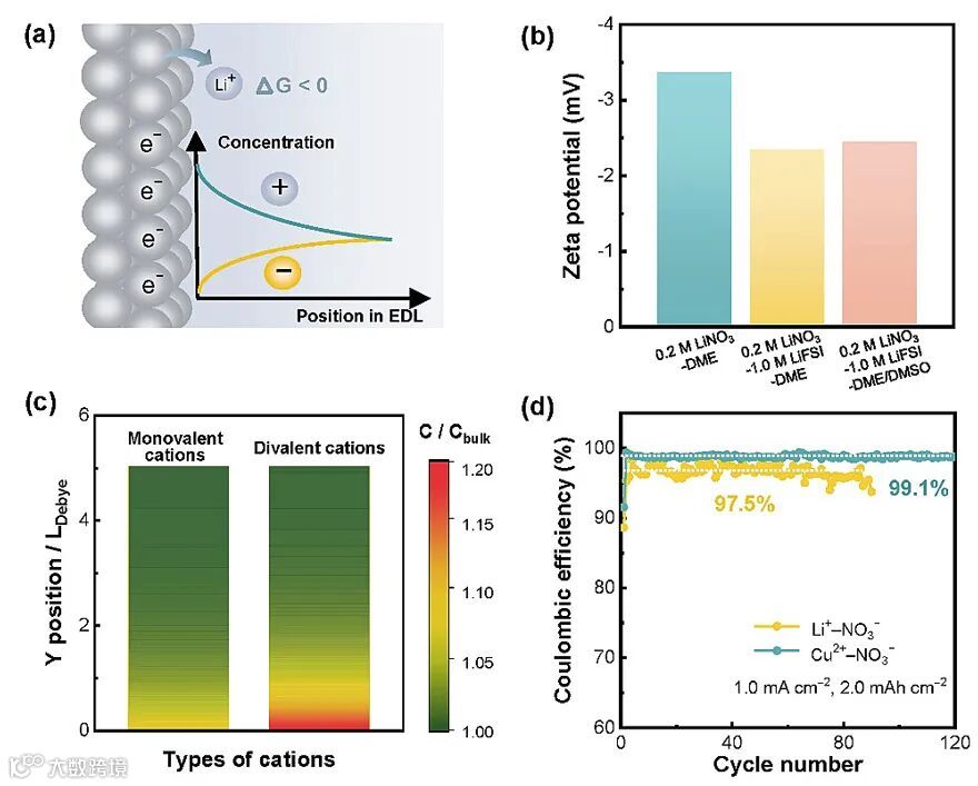 图3. 多价阳离子(以铜离子为例)调控双电层性质,实现更高的循环库伦效率。图片来源:Angew. Chem. Int. Ed.