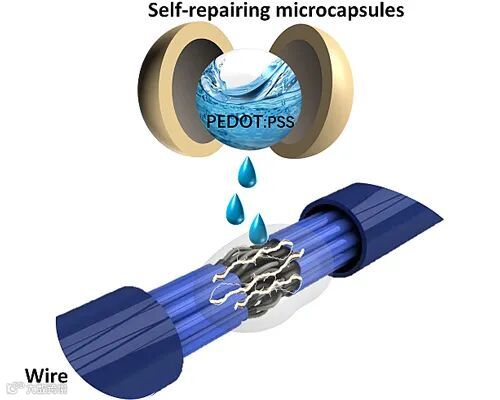 随着科学技术的发展和电子消费品的广泛应用,越来越多的电子器件向小型化、柔性化、可折叠的趋势发展。然而,柔性化器件的电子电路运行过程中不可避免的会遇到磨损、疲劳、断路等问题,这也是大部分电子设备发生故障的主要原因。因此,科学家们开始研制能够实现自我修复的材料或电子设备,当电路断开时,可以在特定的条件下,例如温度、压力、湿度等,使自修复材料发挥作用,从而实现自动修复柔性电路的损伤并恢复其关键功能。