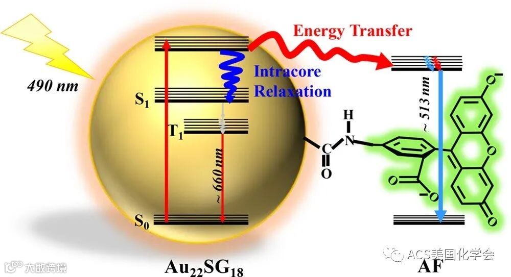 图2. Au22团簇与氮基荧光素连接后的光激发态弛豫机理图。