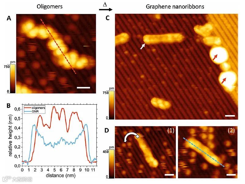 图3. 蒽低聚物转变为石墨烯纳米带。图片来源:Science