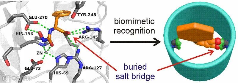 图1. 具有盐桥键合位点的“内修饰空腔”的仿生设计。图片来源:Angew. Chem. Int. Ed.