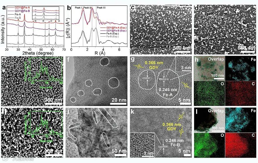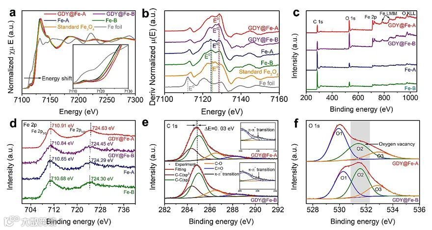 图3. GDY@Fe-A、GDY@Fe-B及相关对照样品的化学态表征。