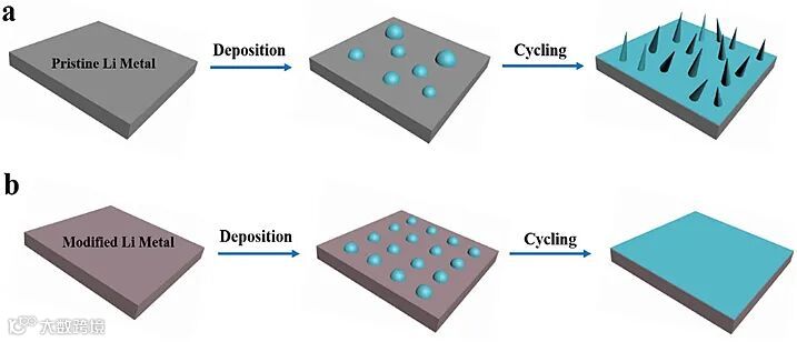 锂金属用做负极时有着其他材料难以比拟的优势,其理论比容量极高(3860 mAh g-1),电极电势极低(-3.04 V vs. 标准氢电极),理论上是负极材料的最佳选择。但其在使用中存在致命的安全问题,主要包括:(1)无限制锂枝晶生长导致短路并引发安全问题;(2)金属锂的连续副反应和相当一部分死锂的形成导致循环性能变差;(3)无限体积变化诱发的负极完全粉碎。针对这些缺陷,侯仰龙课题组提出了有效保护策略。