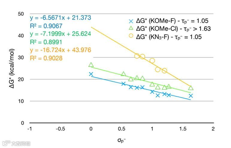 图7. 一系列SNAr反应限速步骤活化能并不包含整个反应机理信息。图片来源:J. Am. Chem. Soc.