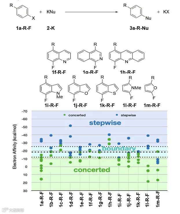 图6. 芳基氟化物的电子亲和力有助于快速分类底物所遵循的SNAr机理。图片来源:J. Am. Chem. Soc.
