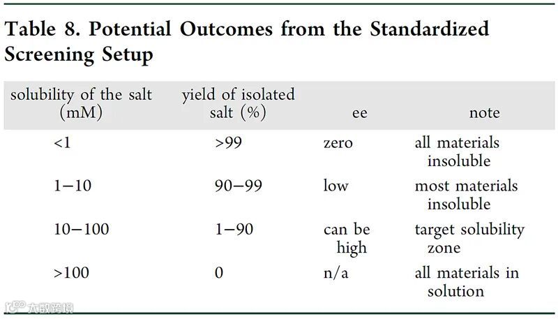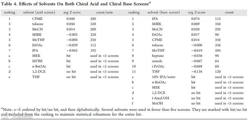 这跟我们实际见到的情况不同啊?现象摆在那没问题,那就是分析现象的方法需要调整。于是,作者结合之前的经验,分析了Z值和拆分试剂溶解性之间的关系,咱们直接看下表作者分析的结果。