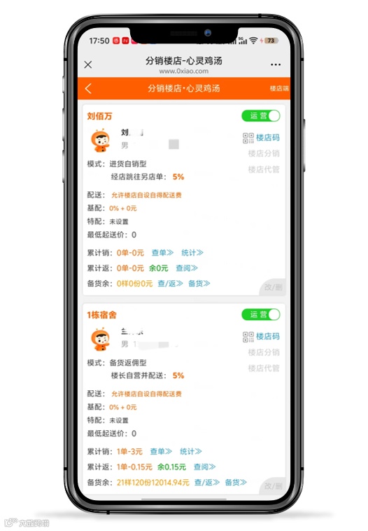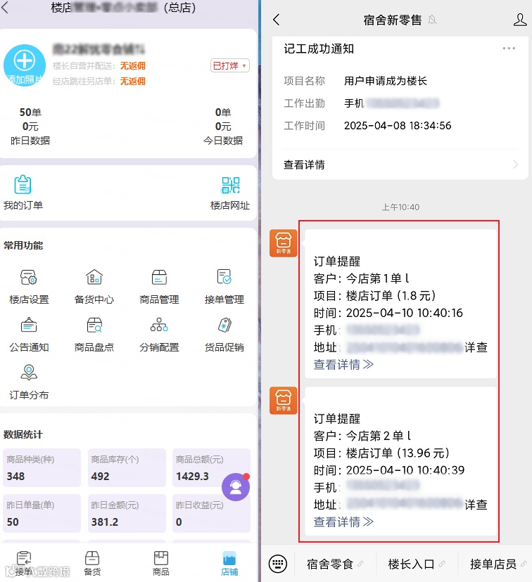 订单较多时,你可在系统中配置多个楼长帮忙分销。无需把大量零食囤在寝室,降低了空间占用和资金压力。