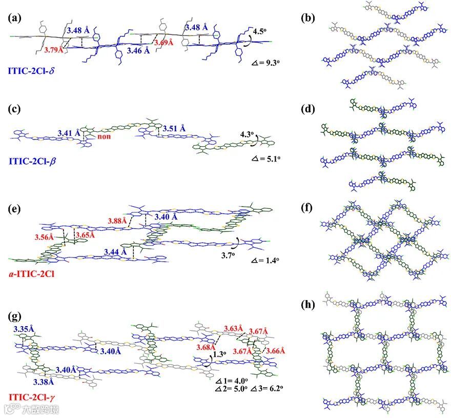 图3. A-D-A-D-A体系分子BTIC-CF3-γ的单晶堆积信息 (Joule, 2020, 4, 688)。