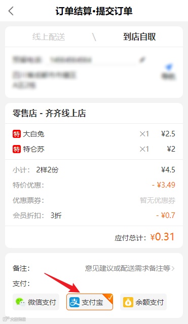 3.零售店主、批发店主绑定扫呗后,用户通过微信扫码下单,允许选择支付宝支付方式。