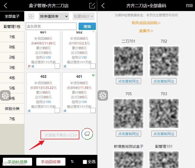1.盒子资金统计,入账金额中,增加计算楼长进货类型的成本数额。