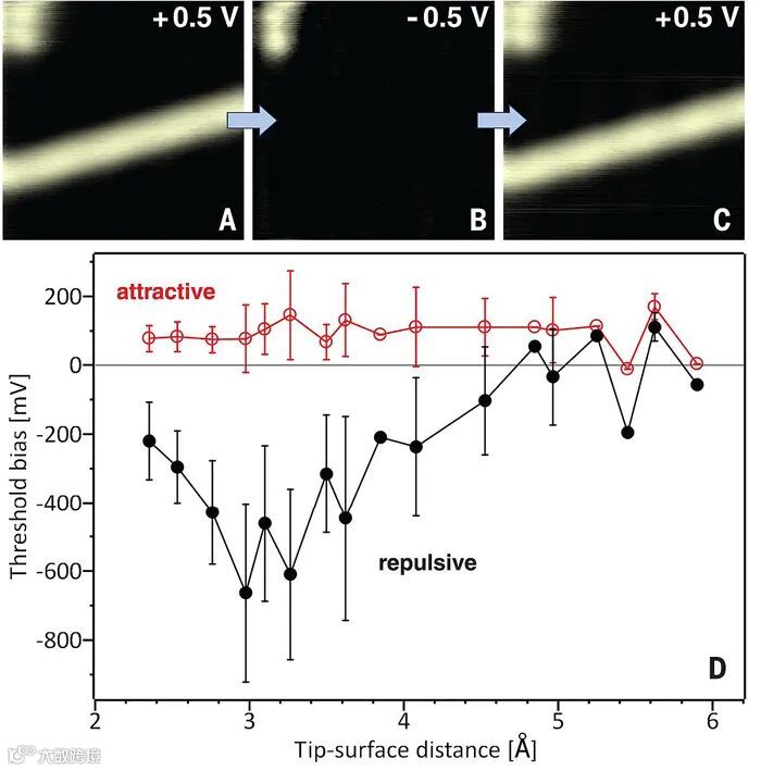 偏压决定了分子与STM针尖的吸引或排斥。图片来源:Science