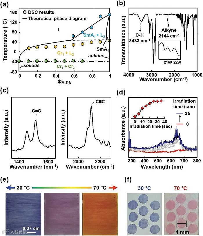 M-DA/4,6-癸二炔体系温敏变色性能表征。图片来源:Adv. Mater.