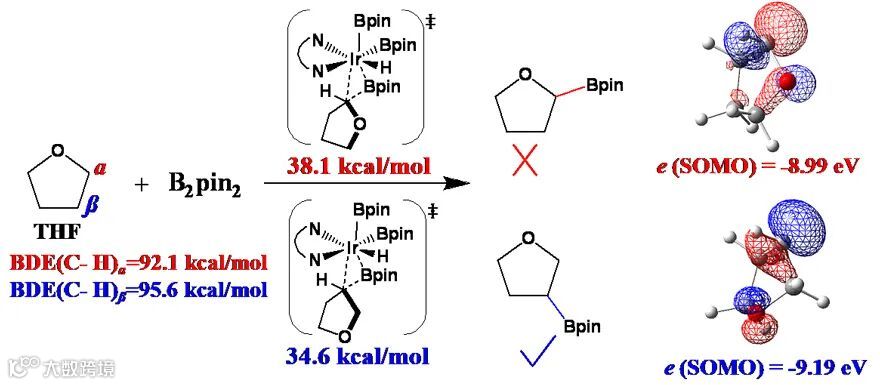 图3. THF的β C(sp3)-H键区域选择性的反应及其内在原因。图片来源:J. Am. Chem. Soc.