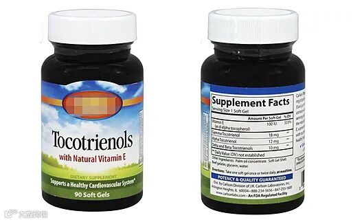 相比生育酚,生育三烯酚具有更强的抗氧化特性,并且特有降低胆固醇、神经保护、抗癌和抗炎症等生理功能,具备更广阔的应用前景。目前国外已有相应膳食补充剂上市(图1),主要功效成分为棕榈油中提取的生育三烯酚。尽管DL-α-生育酚的化学合成非常成熟,且成本低廉,但生育三烯酚尚未实现商业化的化学合成,并且在植物分布中的相对稀少,限制了其进一步的开发和应用。