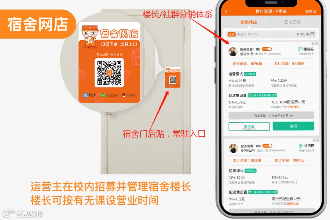 网店模式只需要我找好货品然后上架到我的店铺,同学们就可以通过扫二维码下单,收到订单通知后装好商品配送即可。