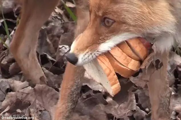 小狐狸当着众人的面大吃了一顿。。。吃饱肉之后,它似乎还打算把这些食物打包带走。。。