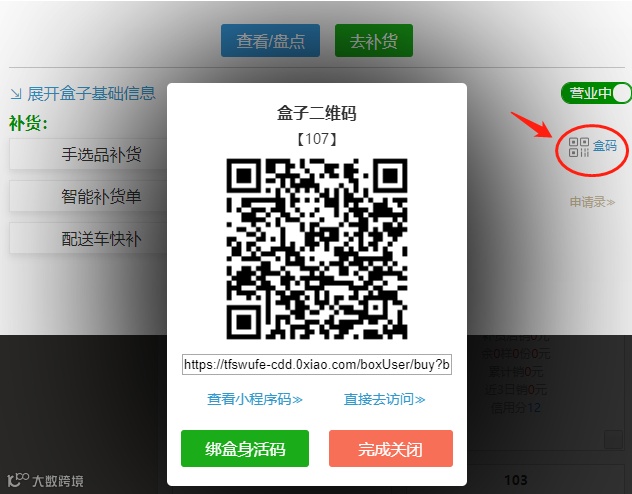 第一步,就是将我们从总部物料店购买的活码贴与盒子绑定。