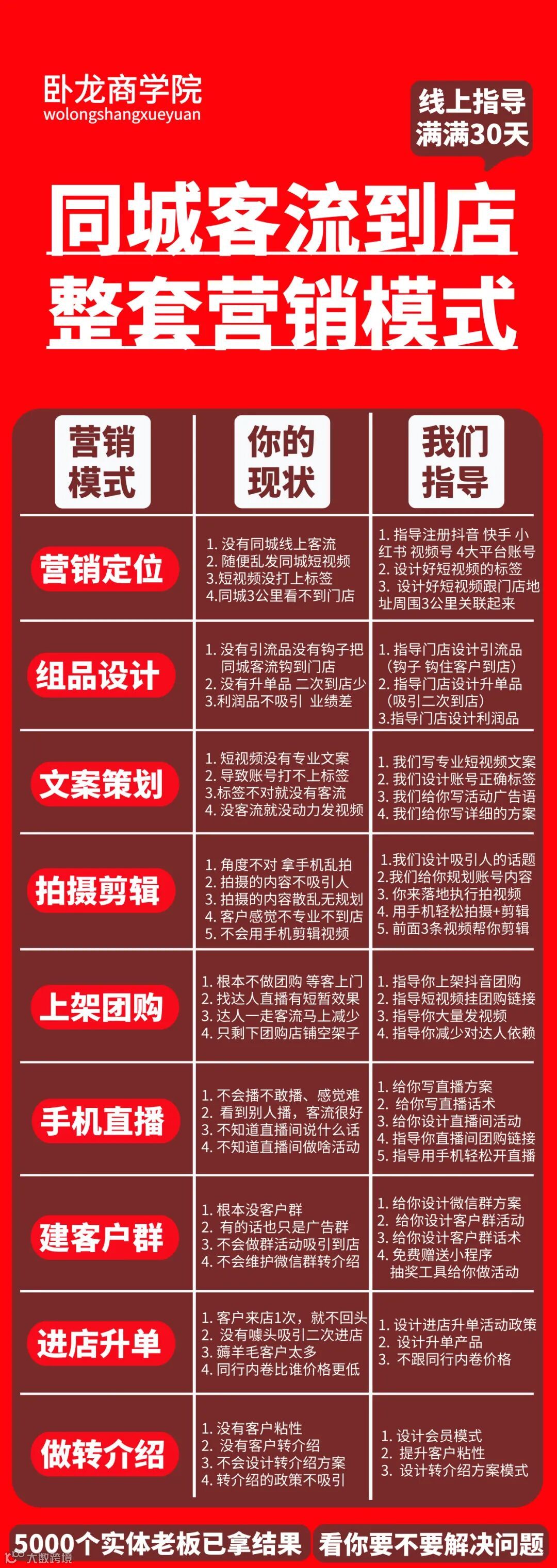 4.商家团队彻底学会从引流——进店——成交——复购——转介绍的工作流程;