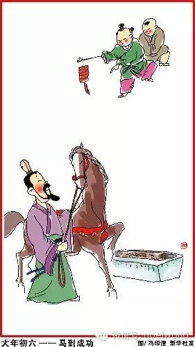 大年初六,马到成功。沥酒拜街中。万户千门看,无人不送穷。
