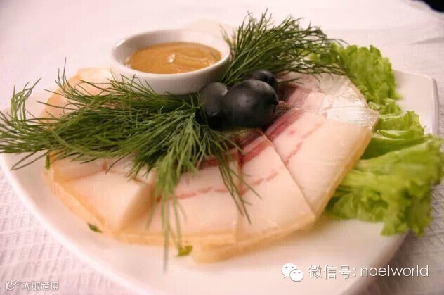 盐腌的肥猪肉Соленое сало,和南方的腊肉近似。对于俄罗斯人来说,没有сало就没法喝酒。