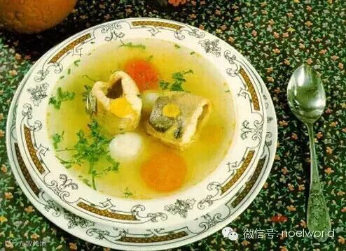 鱼汤уха。汤没有什么值得说的,伊万·克雷洛夫Иван Андреевич Крылов写过一个《杰米扬的鱼汤》的寓言,描写了一个叫杰米扬的主人请朋友喝鱼汤,在朋友已经喝饱的情况下,仍不断殷勤地劝朋友喝,喝得朋友以后再也不敢去他家做客的故事。