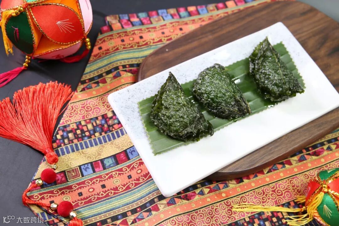 荚蒌叶包裹着肉沫炸成荚蒌角