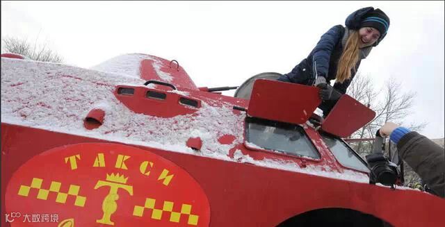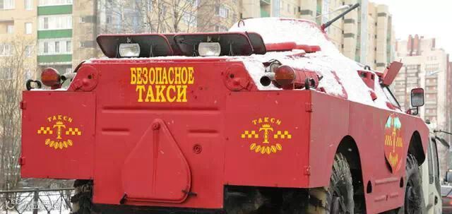 当地时间2014年12月1日,俄罗斯圣彼得堡,一辆由前苏联时期的装甲巡逻车改造而成的“高大上”出租车亮相街头,霸气十足。