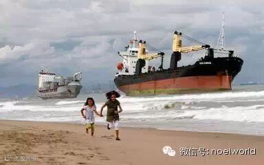 暴风雨过后,西班牙瓦伦西亚萨雷海滩上两条已搁浅四周的货船重新下水。
