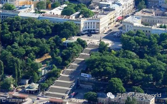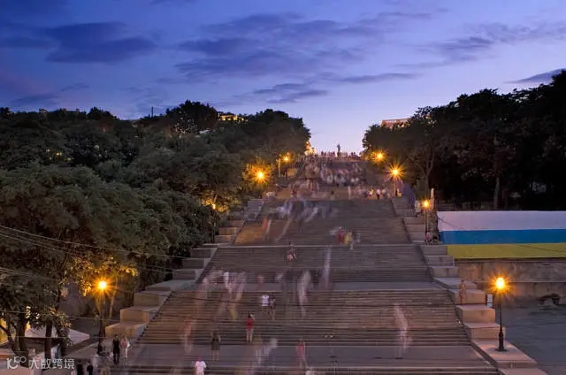 “敖德萨阶梯”位于乌克兰敖德萨州首府敖德萨——黑海沿岸最大的港口城市和工业、科学、文化以及旅游中心。通向海边的“敖德萨阶梯”始建于19世纪三四十年代,因纪念1905年“波将金”号军舰起义而被称为“波将金阶梯”。“波将金阶梯”共有192级,台阶自上而下逐级加宽,它与市中心半圆广场上的城市奠基者里舍利耶大公的雕像遥相呼应。站在最高处,可以鸟瞰美丽的敖德萨港。