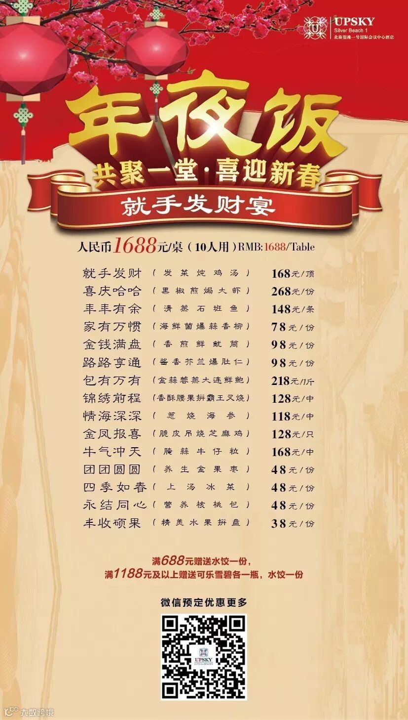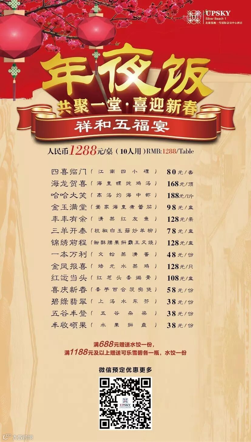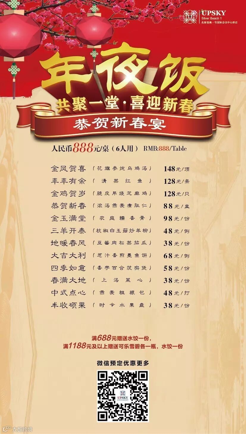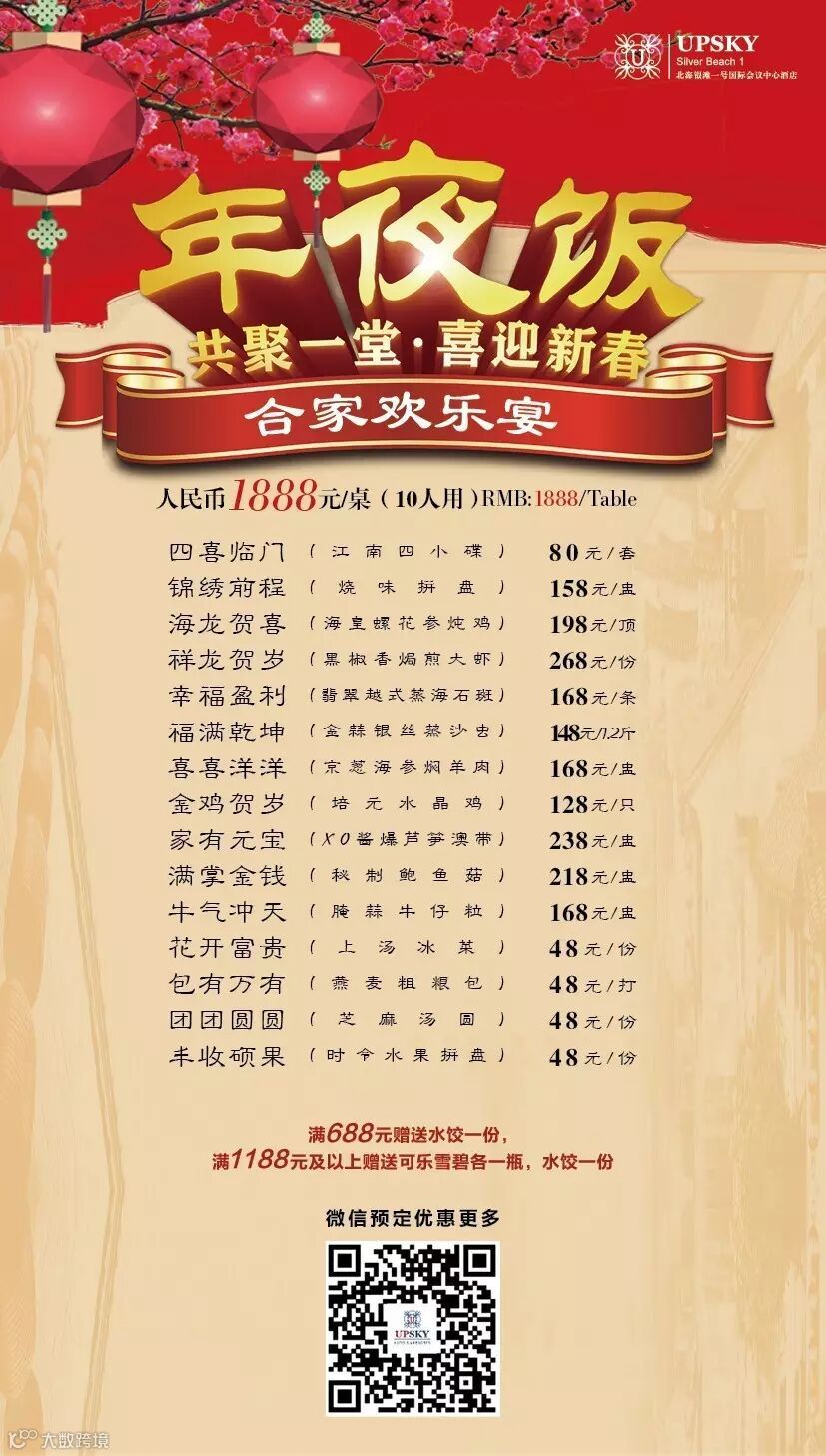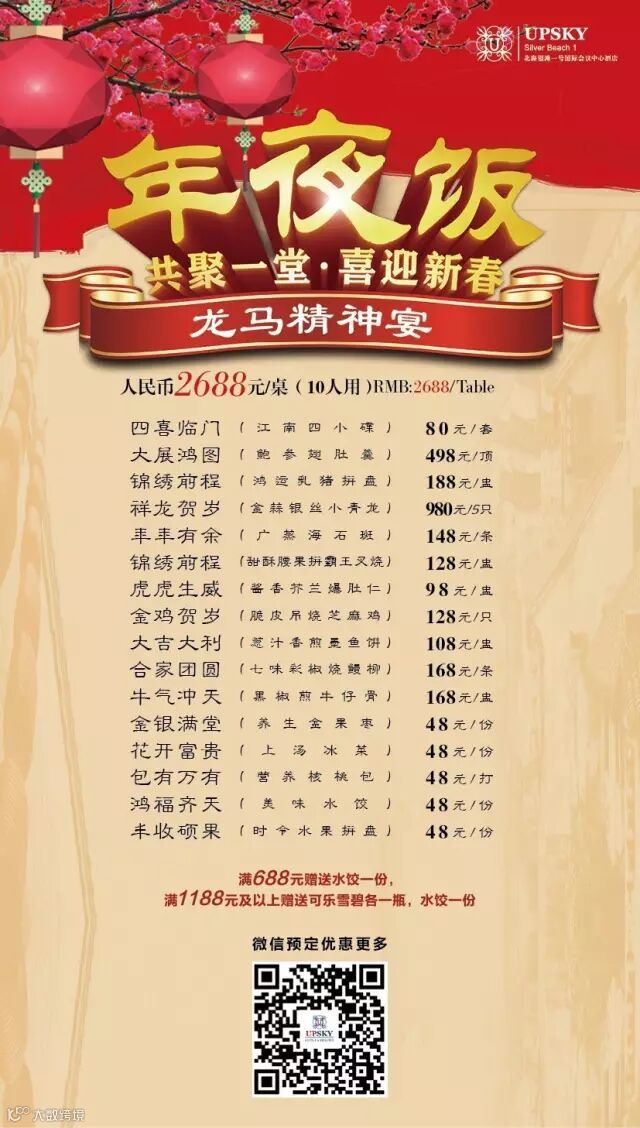 我们推出六种不同的除夕年夜饭供您选择