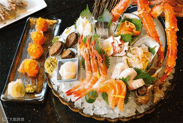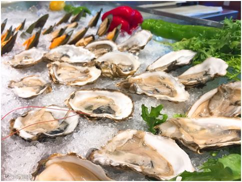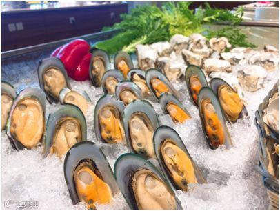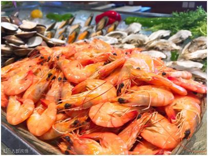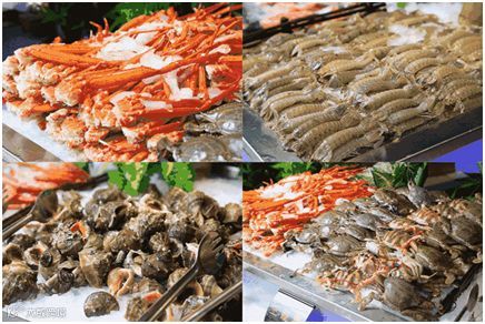 挪威三文鱼、中虾、法国生蚝、日本红鲷鱼、弹虾或澳洲长脚蟹腿、象鼻螺、红鲷鱼、醋青鱼、车螺、刺螺、辣螺、素海参等各式海鲜,海味纯正,品种繁多。