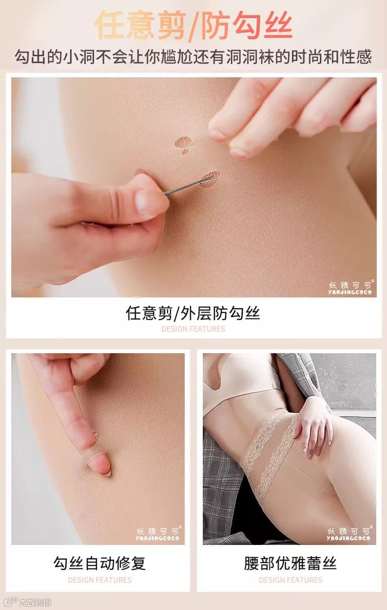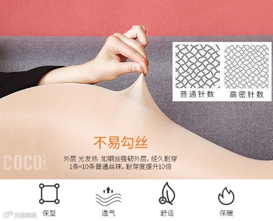 妖精可可透透袜采用高密针数,比普通丝袜耐穿性提升10倍