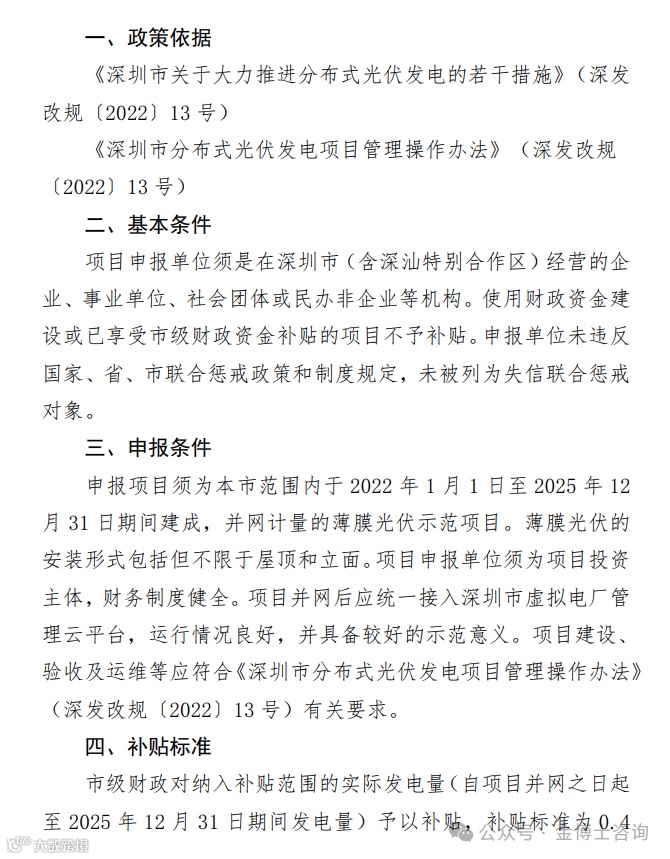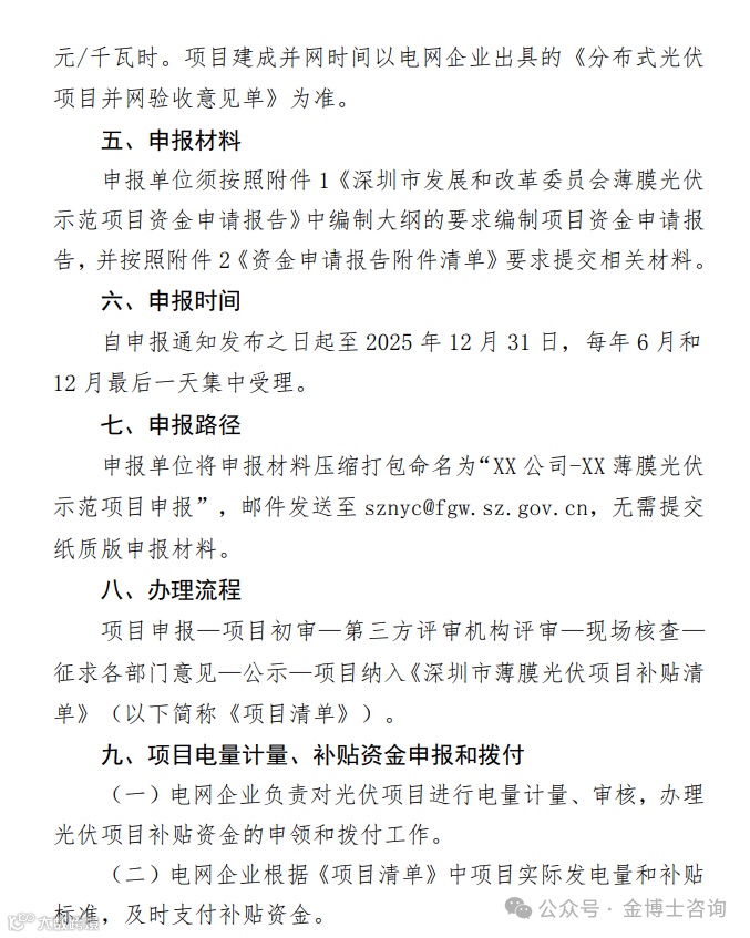 根据《深圳市关于大力推进分布式光伏发电的若干措施》《深圳市分布式光伏发电项目管理操作办法》(深发改规〔2022〕13号)有关规定,我委组织开展薄膜光伏示范项目申报工作,现将有关事项通知如下: