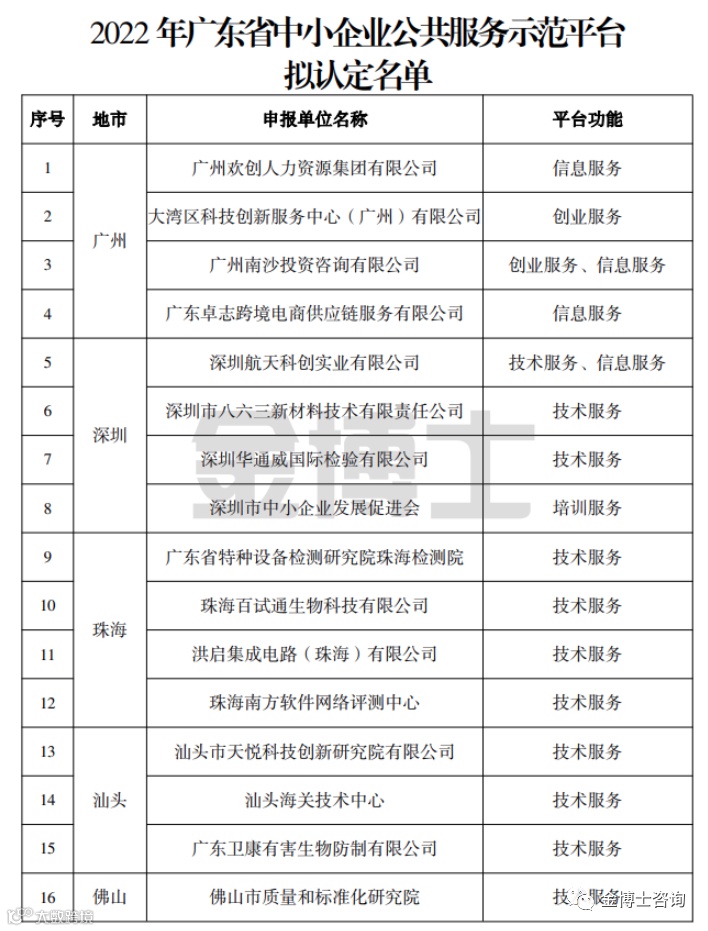1. 2022年广东省中小企业公共服务示范平台拟认定名单