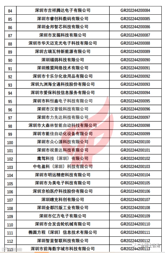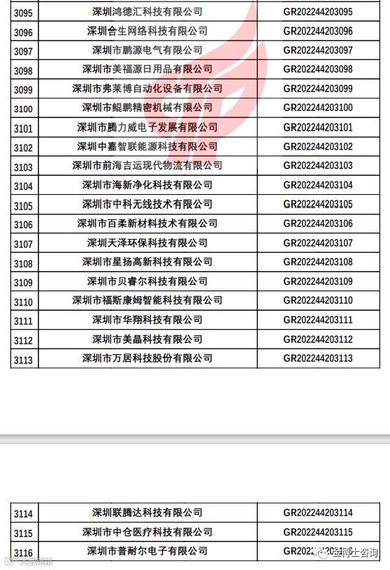 根据《高新技术企业认定管理办法》(国科发火〔2016〕32号)和《高新技术企业认定管理工作指引》(国科发火〔2016〕195号)有关规定,现对深圳市认定机构2022年认定的第一批3116家高新技术企业备案名单(详见附件)予以公告。