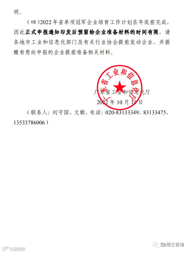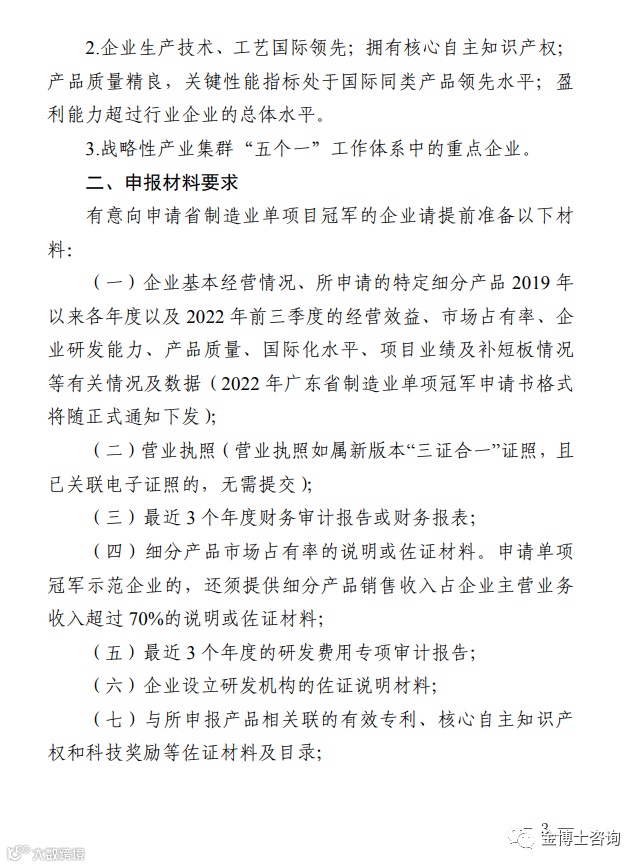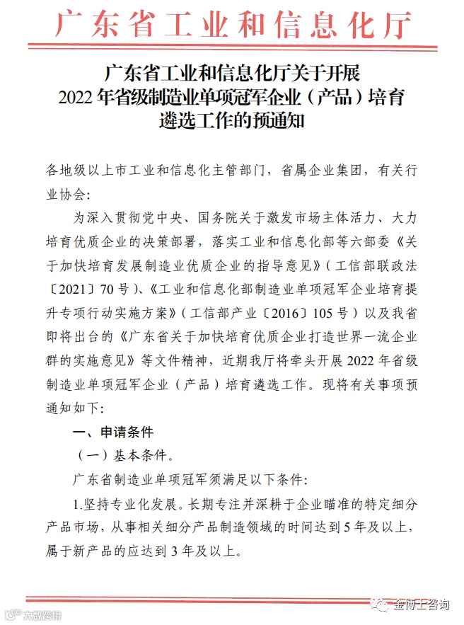 附件:广东省工业和信息化厅关于开展2022 年省级制造业单项冠军企业(产品)培育遴选工作的预通知