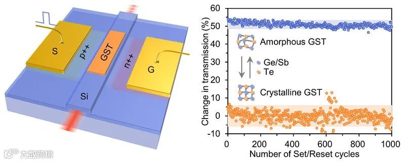 可重构光子器件的性能对于可编程光子集成系统的大规模化至关重要。近日,华盛顿大学的Arka Majumdar团队与英特尔、斯坦福大学及宁波大学合作通过将硫系相变材料Ge2Sb2Te5 (GST)与硅波导及微环谐振腔集成,实现了非常适合超大规模集成的非易失性电致相变光开关。