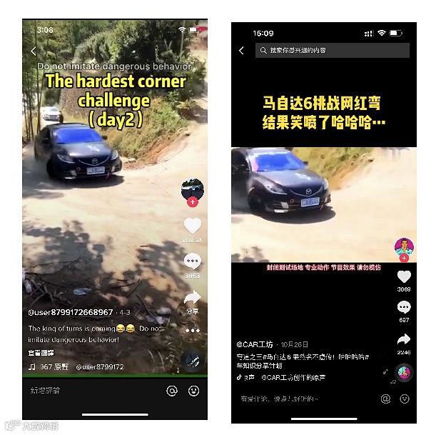 同样的视频在左侧tiktok的点赞是80萬,在右侧抖音是3600点赞