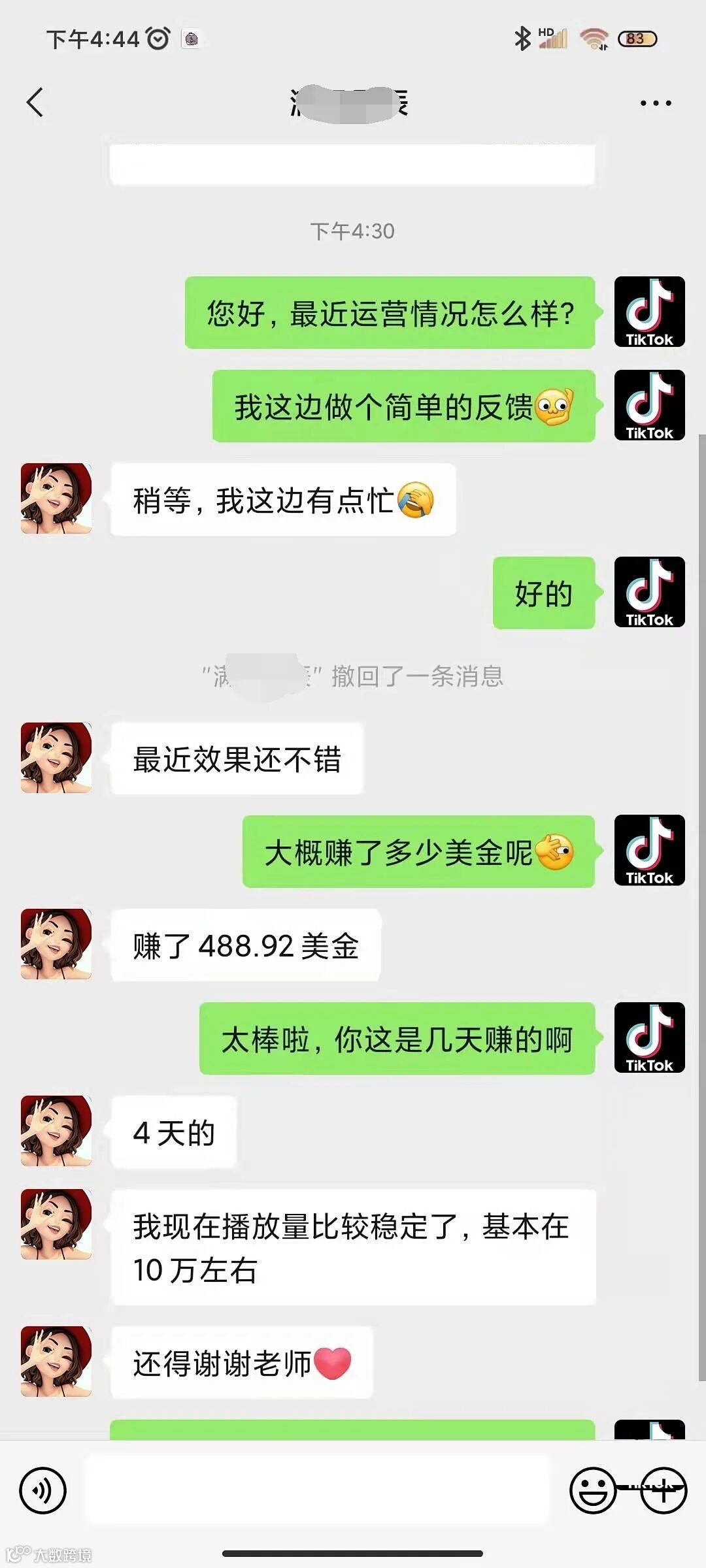 有一个老同学实在看不下去了,给她推荐瞭一个人,做的是TikTok短视频(海外版抖音)。