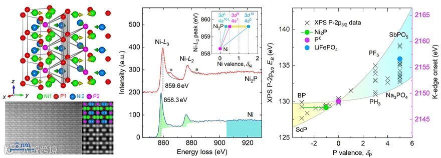 图1. Ni2P的多面体配位特征及元素价态测定。图片来源: Adv. Mater.