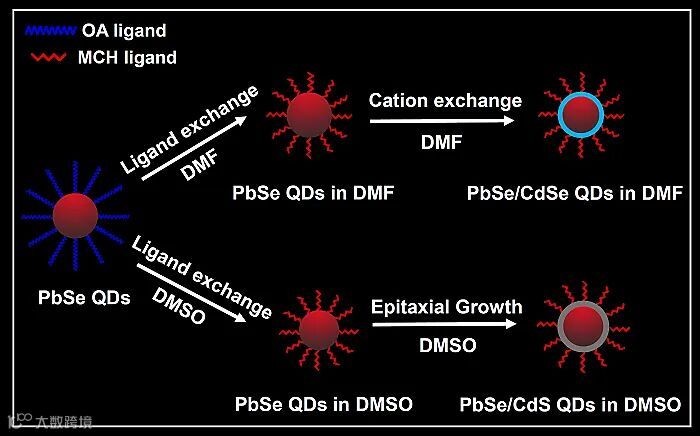 图1. PbSe/CdSe和PbSe/CdS核壳量子点合成示意图。