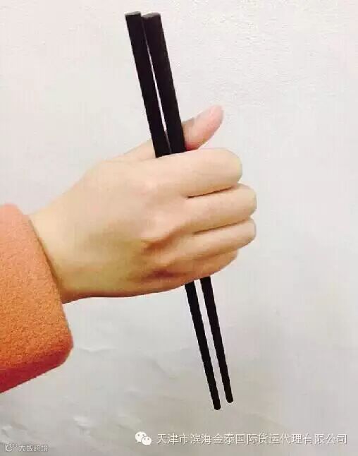 4、握拳式,即以单手握拳,五指并拢的姿势将筷子夹在掌中;
