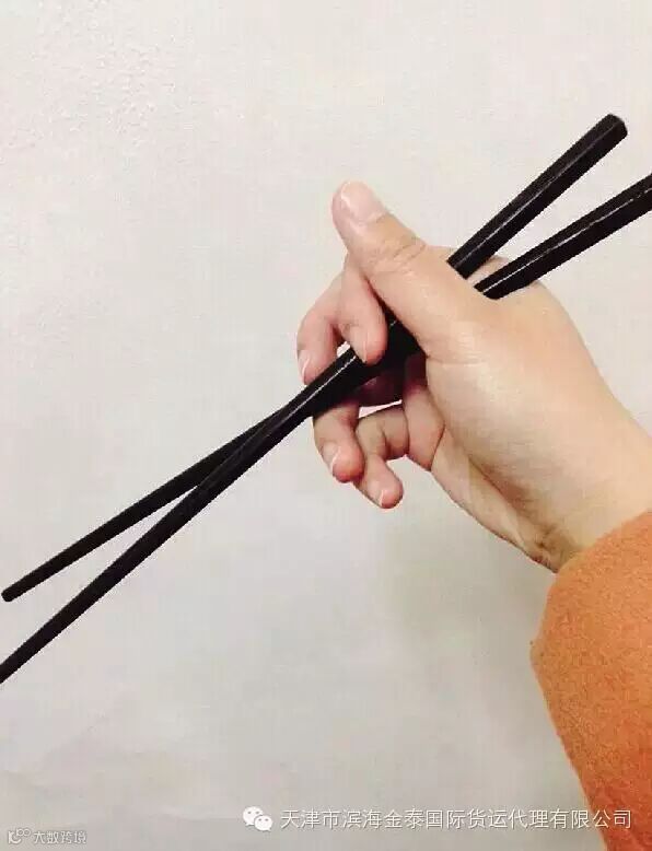 5、握笔式,即以大拇指和食指顶着上方筷子,如同握钢笔,使用时,筷子会交叉;
