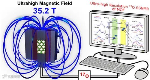 近日,南开大学材料科学与工程学院稀土与无机功能材料研究中心徐骏副教授通过与法国Christian Bonhomme教授、美国甘哲宏教授、加拿大西安大略大学黄忆宁教授等团队合作,成功地在35.2 T磁场下获取并解析金属有机框架材料的超高分辨率17O一维和二维核磁谱图,从而揭示了金属有机框架的超精细结构信息。