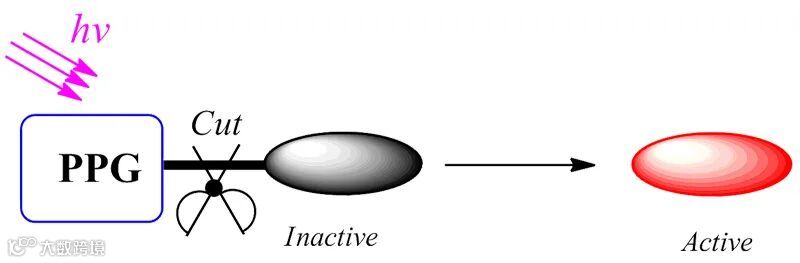 近年来,光脱保护基团(Photoremovable Protecting Groups, PPGs)在化学生物学和有机合成研究领域得到了越来越广泛的应用。利用PPG与生物活性小分子的特定化学基团形成共价键后,可使得小分子无法与靶向的生物大分子(如蛋白质)结合而失去其活性。在光照下,激发态的PPGs与小分子之间的共价键发生断裂,从而释放出具有生物活性的小分子。由于光照的可控性及非接触特点,该策略在药物的可控释放、生化动态过程的高时空分辨观测等研究中具有独特的优势。