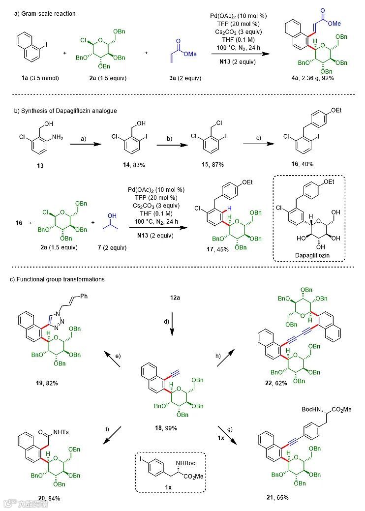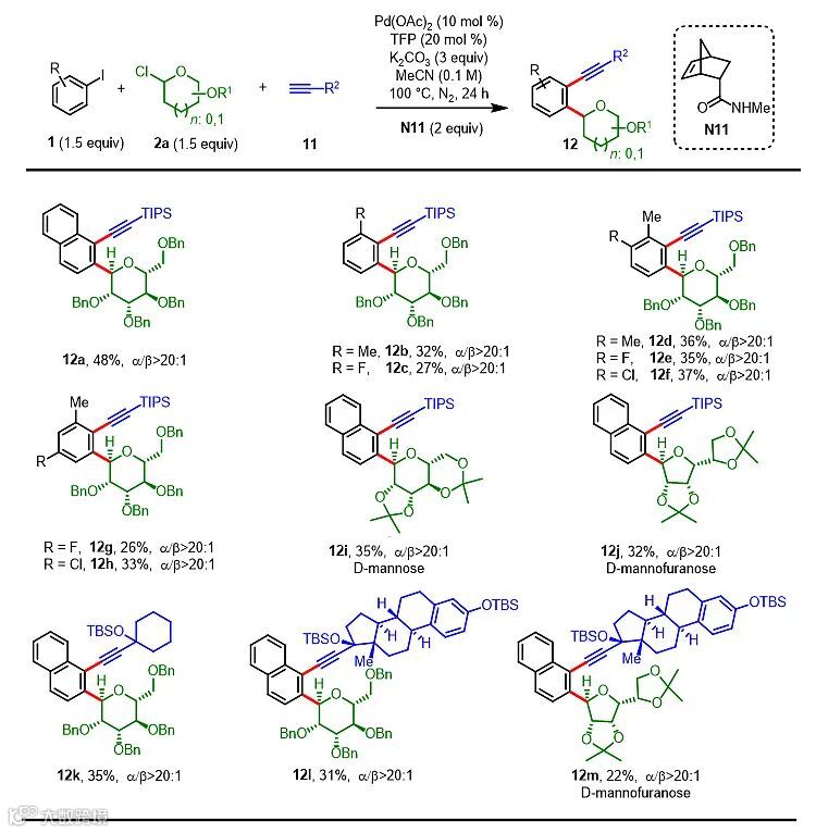 图3. Heck反应终止的Catellani型C-芳基糖苷的构建