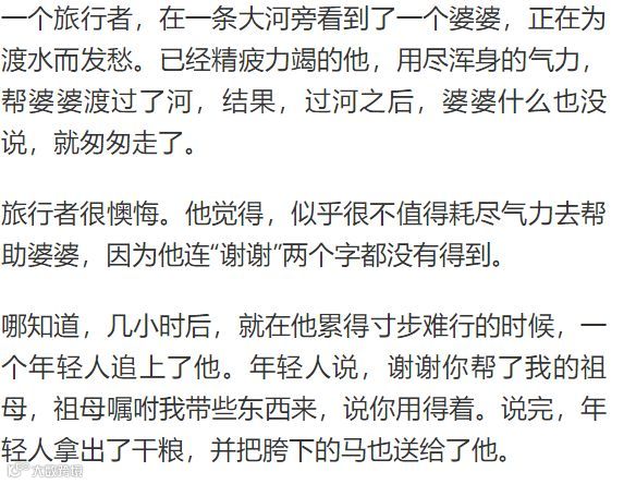 而这个故事所起到的积极正面的暗示作用,事实证明是十分强大的,很多人听完这个故事,都会发生生命的改变,而且还用之后的人生继续证明这句话。