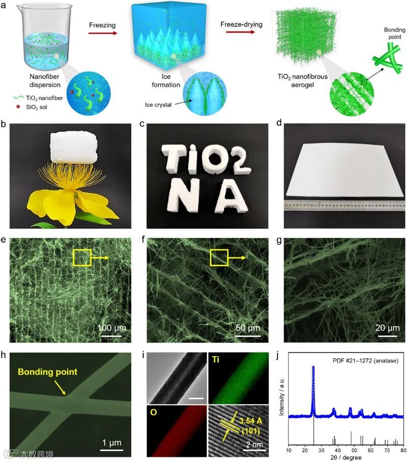 图1. TiO2纳米纤维气凝胶的有序胞腔结构使其具有超低的体密度、超高的孔隙率和优异的弹性